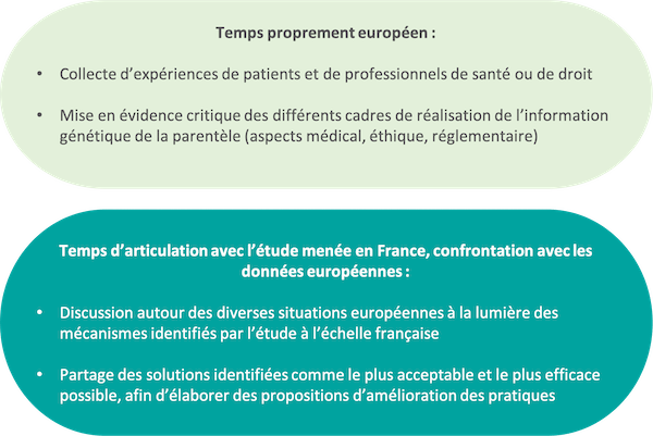 En parallèle de l’étude à l’échelle nationale, nous avons choisi d’élargir nos recherches aux autres pays européens afin de collecter les pratiques d’Informations Génétique de la Parentèle (IGP) pour une dizaine de maladies rares génétiques différentes. L’intérêt de cette approche multi-maladie et européenne est de :